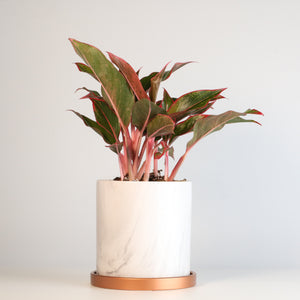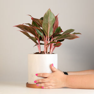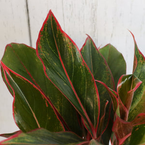 Aglaonema ‘Siam’ – also known as Chinese Evergreen ‘Siam’ – is a vibrant tropical houseplant that brings bold color and effortless beauty to any indoor space. With its stunning red-pink stems and deep green, lance-shaped leaves edged in crimson, this low-maintenance stunner is perfect for brightening up your home or workspace. Additionally, they are known for being air-purifying plants, contributing to a healthier indoor environment.