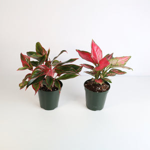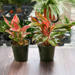 Bring home a burst of bold color and effortless elegance with our Chinese Evergreen Aglaonema Bundle! This vibrant duo features two stunning varieties—Siam with its rich red-tinged foliage and Wishes with dreamy pink hues. Known for their low-maintenance charm and air-purifying power, these plants are ideal for anyone looking to green up their space in style.