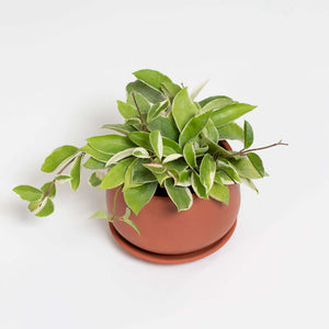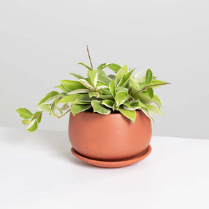 • Valentina Terracotta Pot 5" - a beautiful molded terracotta pot that is porous and fire glazed to allow plant roots to breathe; color works well with any decor and will develop a beautiful patina color over time. Includes matching dish underneath to catch water drainage and protect surfaces.