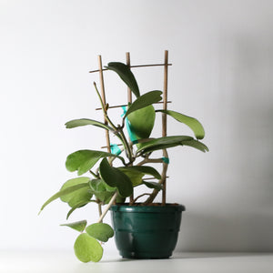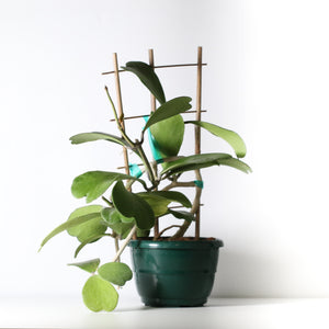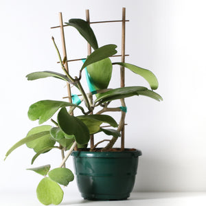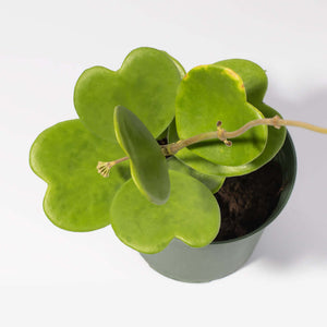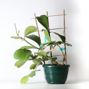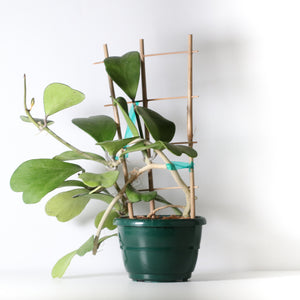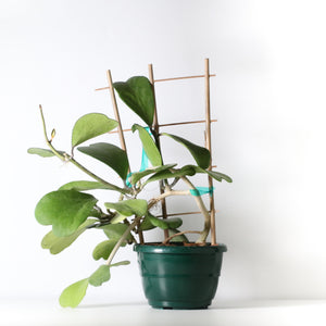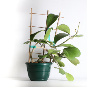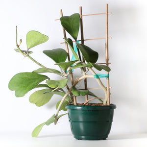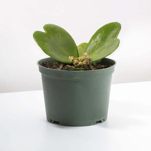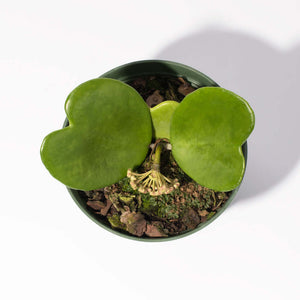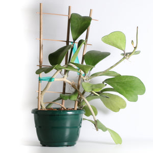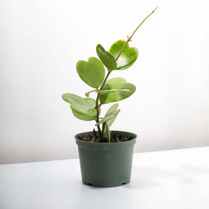 We love heart-shaped leaves and the Hoya 'Kerrii' is the iconic Sweetheart plant. This plant comes potted as pictured and included at least 2 nodes to continue healthy growth and produce its heart-shaped waxy leaves. This is a semi-succulent, perennial, that trails and vines with lush waxy foliage and gorgeous blooms. Needs bright light and drying between watering but will give you amazing growth in hanging pots or elevated shelves. A perfect plant for novice houseplant owners.