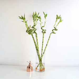 Each bamboo twist is carefully shaped and grown to create a unique, sculptural look. Their vibrant green stalks instantly add life to a room and look stunning in decorative vases or minimalist containers.