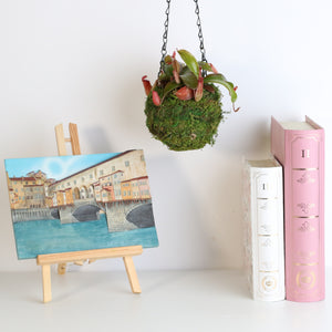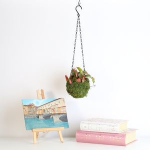 - Small Hanging 4" Kokedama Moss Ball" - This plant comes packaged in a preserved moss ball. Easy hang your pitcher plant in this chic and stylist moss ball planter. 4" Ball Size: 12" chain - 3" opening - 4" diameter