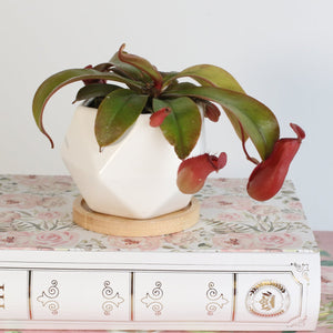 Whether you're new to carnivorous plants or a seasoned pro, this plant is easy to care for and thrives with just a bit of attention. Its vibrant colors and intriguing form make it a standout piece, ideal for desktops, windowsills, or terrariums. Add the Lady Luck Pitcher to your collection and enjoy a little piece of the wild indoors! This hybrid variety of Nepenthes is known for its vibrant pitchers and insect-trapping abilities, making it a popular choice among carnivorous plant enthusiasts.