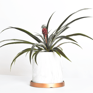 - Selene - Ceramic 6.5" Marble Planter ready for your home or office space with a porcelain rose gold tray to catch drips when watered. (To ensure plants arrive safely, we package this pot separately, and the plant will arrive in a nursery pot that can be placed inside the Selene)