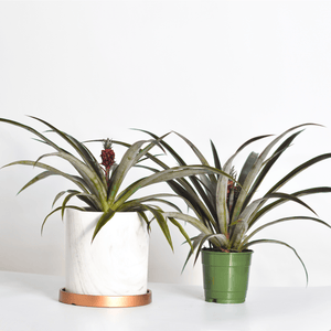 This small-scale pineapple has fruit that reaches the size of a small tennis ball and serves as an ornamental plant than a fruiting crop. If you want one that will produce sweet edible pineapples, check out our Golden Pineapple Plant.