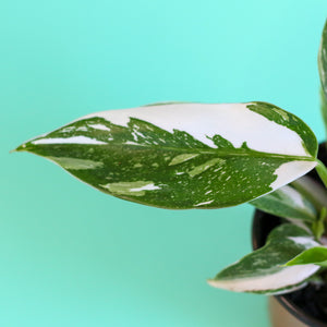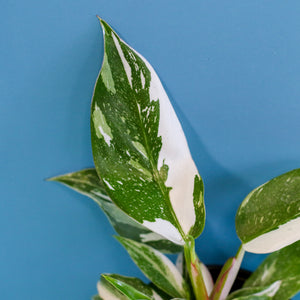 This plant is not only visually stunning, but it is also easy to care for, making it a great choice for both experienced and novice gardeners alike. Its unique coloration and slow-growing nature make it a sought-after collector's item for plant enthusiasts. It is sure to be a conversation starter in any home or office. Whether displayed on a bookshelf, a windowsill or hanging from the ceiling, the Philodendron White Princess is a beautiful and low-maintenance addition to any space.