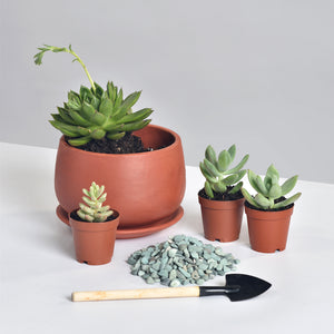Working with succulents can be messy, so wear something you won’t mind getting dirty! You don’t need to bring anything with you, we provide the succulents, terracotta planters, decorative elements, and tools you will need to create your arrangement! The workshop includes: