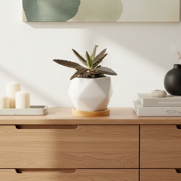 Wanda Ceramic 3" - This plant comes packaged in an elegant hexagonal patterned ceramic planter pot. Includes a bamboo tray.