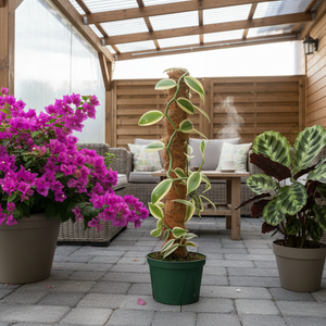Your plant comes established in a 6” nursery pot with a coco moss pole, giving it the vertical support it needs to thrive and climb just as it would in its natural rainforest habitat. Stands at approximately 22" tall from the bottom of the planter, to the top of the moss pole.
