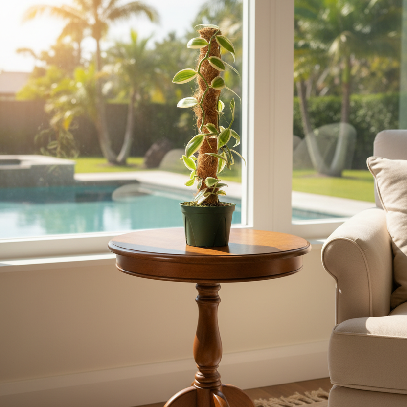 Vanilla Planifolia Orchid ‘Albo-Variegata’ – 6” Pot with Coco Moss Pole