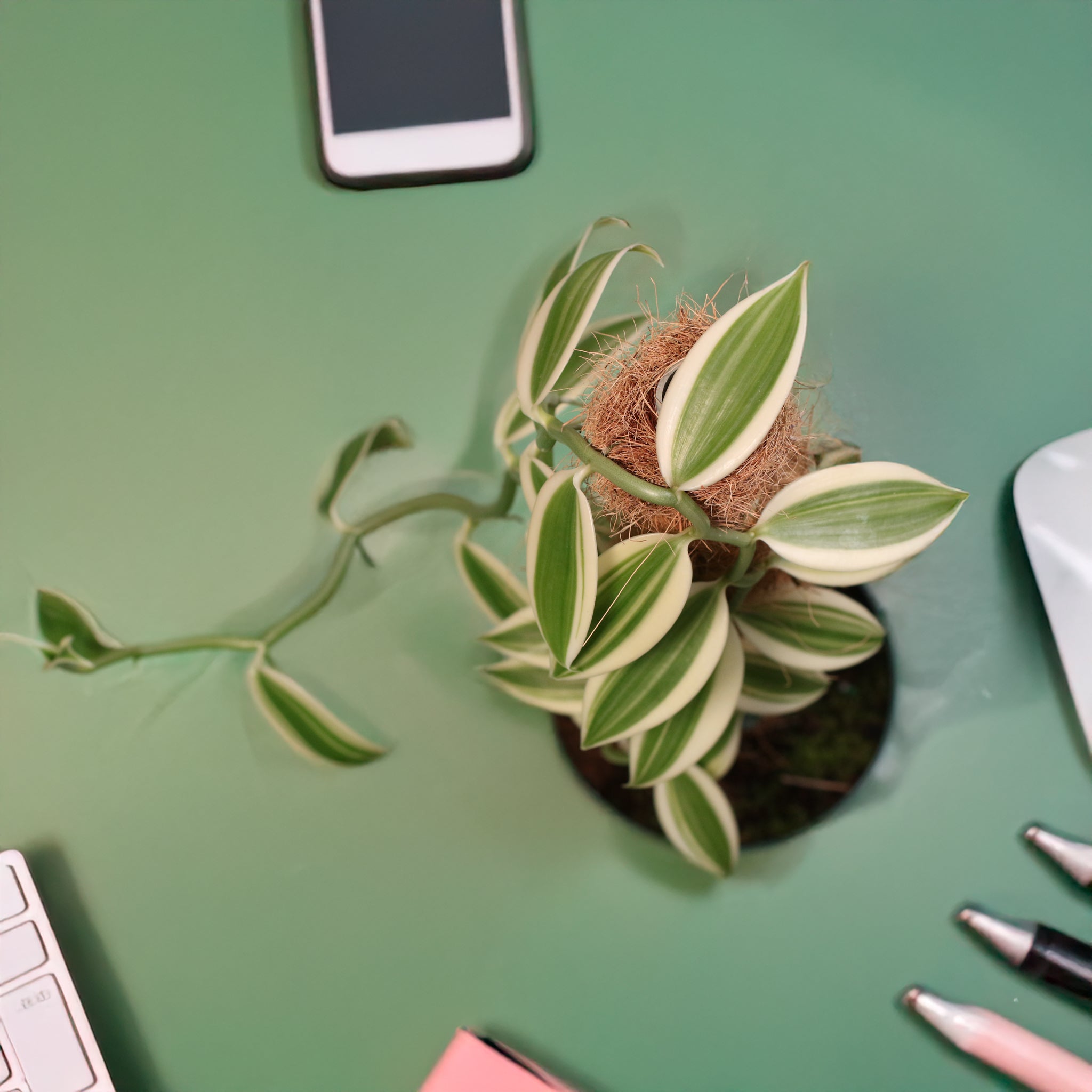 Vanilla ‘Albo-Variegata’ thrives in bright, indirect light.