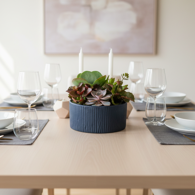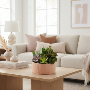Perfect for bright corners, living rooms, bedrooms, or office desks, this arrangement offers all the beauty of nature with minimal care. Planted in a stylish 8" diameter x 4" high pot (9" tall including plants), it’s a modern, elegant centerpiece that complements any décor.