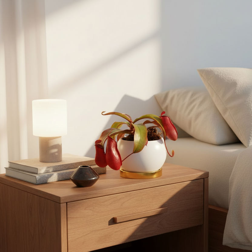 Whether you're new to carnivorous plants or a seasoned pro, this plant is easy to care for and thrives with just a bit of attention. Its vibrant colors and intriguing form make it a standout piece, ideal for desktops, windowsills, or terrariums. Add the Lady Luck Pitcher to your collection and enjoy a little piece of the wild indoors! This hybrid variety of Nepenthes is known for its vibrant pitchers and insect-trapping abilities, making it a popular choice among carnivorous plant enthusiasts.