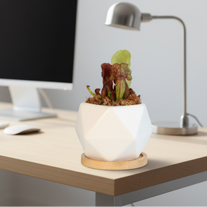 These plants thrive in humid environments and should only be watered with distilled or rainwater. They are sensitive to minerals, fluoride, and chlorine, which can cause yellowing or browning of their leaves. Additionally, avoid using regular soil, as it's too rich in nutrients for them. Instead, we offer Sphagnum Moss, which is the ideal medium for their growth. They prefer bright light. Fluorescent or other cool-temperature grow lights can be used for the indoor cultivation of smaller species. A terrarium of smaller carnivorous plants under such lights can make a great starter set-up.