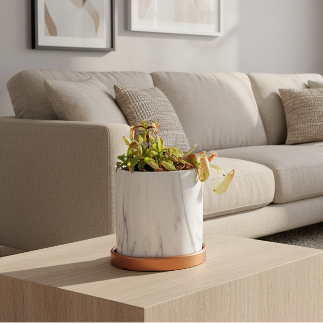 These plants thrive in humid environments and should only be watered with distilled or rainwater. They are sensitive to minerals, fluoride, and chlorine, which can cause yellowing or browning of their leaves. Additionally, avoid using regular soil, as it's too rich in nutrients for them. Instead, we offer Sphagnum Moss, which is the ideal medium for their growth. They prefer bright light. Fluorescent or other cool-temperature grow lights can be used for the indoor cultivation of smaller species. A terrarium of smaller carnivorous plants under such lights can make a great starter set-up.