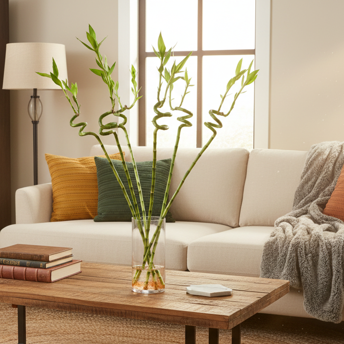 Each bamboo twist is carefully shaped and grown to create a unique, sculptural look. Their vibrant green stalks instantly add life to a room and look stunning in decorative vases or minimalist containers.