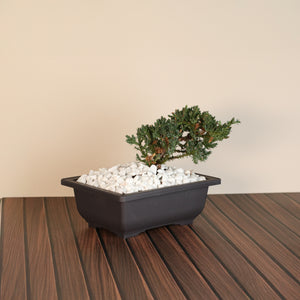 - Rectangular decorative container -Comes in decorative Bonsai dish including pebbles. Size 6.5" x 4.7" x 2.35"