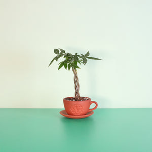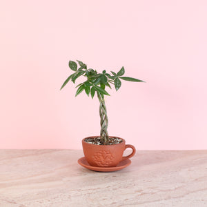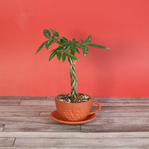 - Lyfe Teacup Planter (approx 5") - This plant comes packed in our monogrammed, glazed terracotta planter with a matching drip tray saucer.