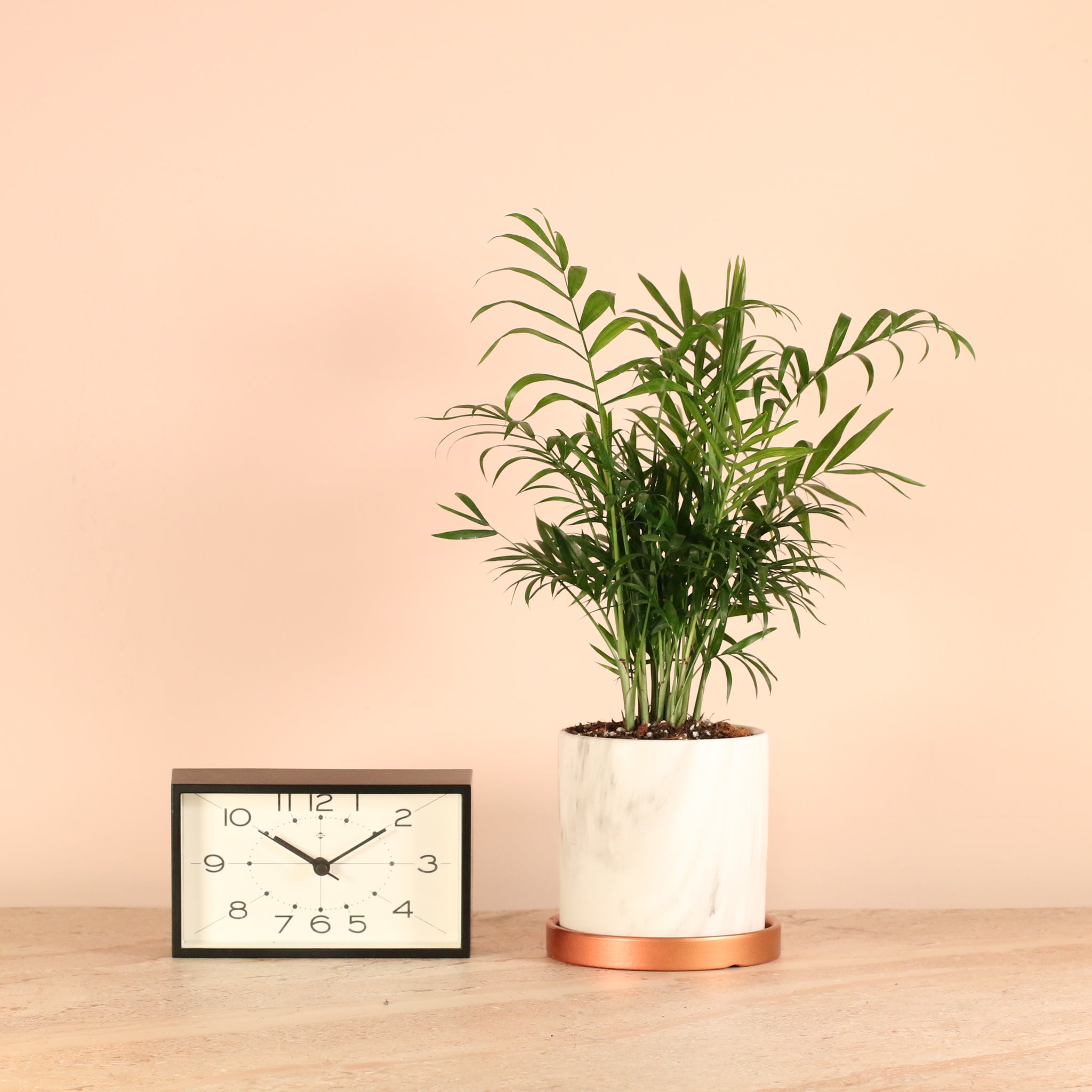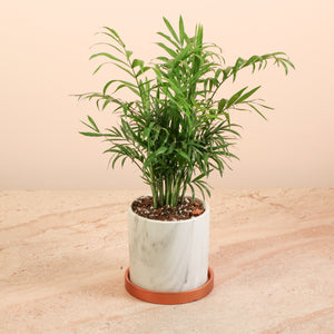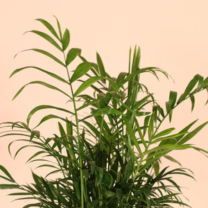Swaying in the warm breeze, an indoor low light and beginner-friendly beauty, this Parlor Palm, aka Neanthe Bella palm, is a beauty to keep indoors. An easy houseplant favorite that works well in any room. This plant is a "miniature" palm tree that is native to the rainforests of Central America. It is a staple houseplant to have in any plant collection, plus it's so easy to maintain and grow.