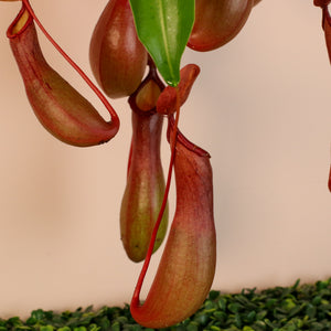 All plants are shipped directly from our indoor greenhouse in South Florida. Each Nepenthes is one-of-a-kind—your plant may have slightly more or fewer pitchers than pictured, but will always arrive healthy and ready to grow. If you’d like, message us and we’ll send you a photo of the exact plant you’ll receive! Lifestyle photos are for inspiration and show what a mature specimen may look like in your space. -