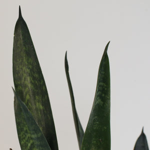 A plant of many names including the common Snake Plant, Saint George's sword, Viper's bowstring hemp and Mother-In-law's tongue it has had a varied history and used in a variety of ways. Ours are grown as ornamental houseplants and it is an evergreen with dense growth. Native to West Africa it is a tropical plant that can get very tall.