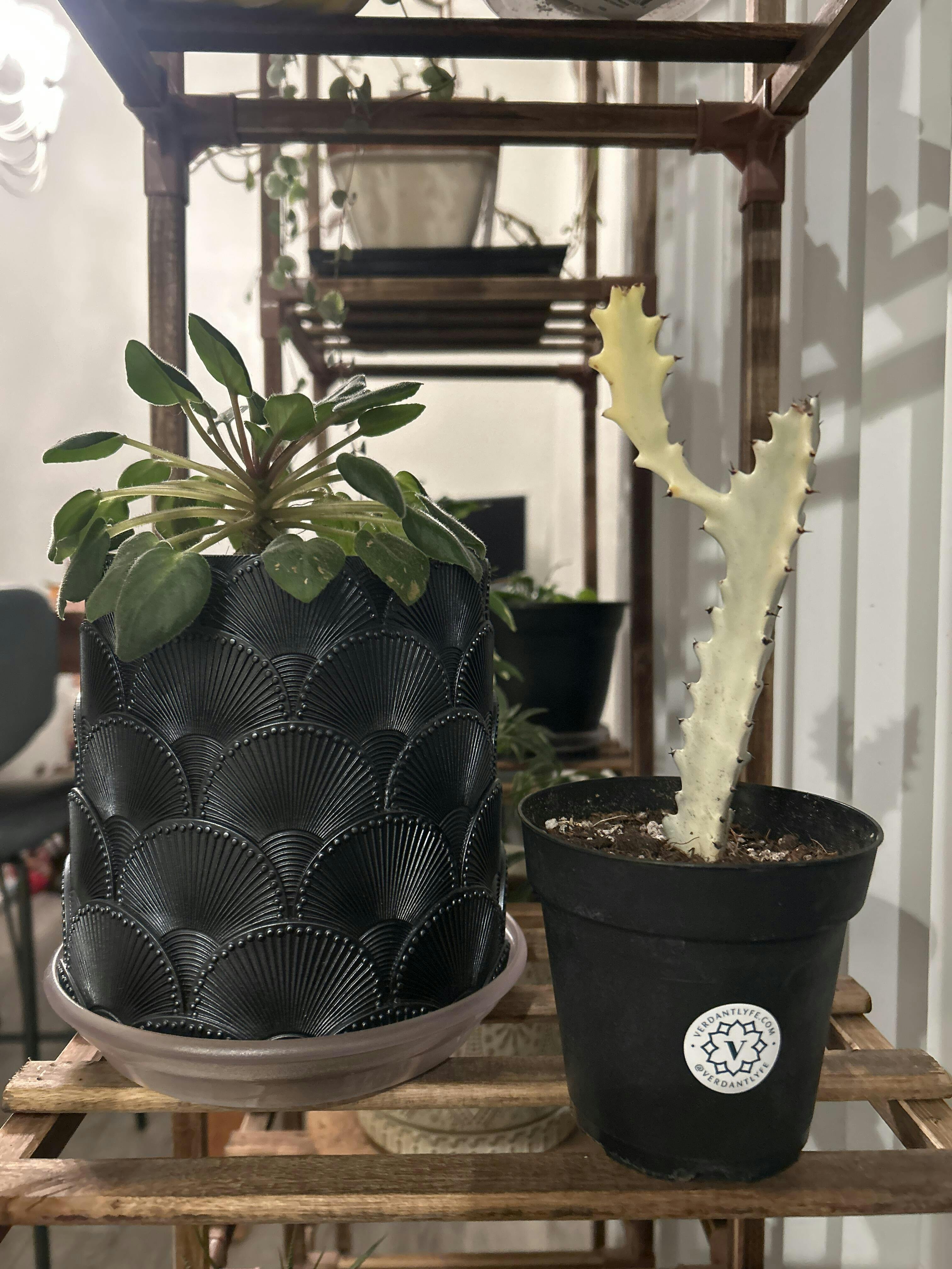 Dragon Bones is an apt nickname for this fascinating-looking plant that is visually striking, the Euphorbia Lactea White Ghost Albo Succulent lacks most of its chlorophyll-making abilities giving it the unique White Ghost Succulent appearance. These a fully rooted and stunners to add to your succulent collection.