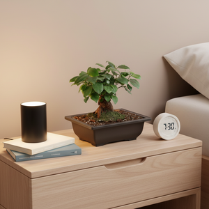 - Bring home the Ficus Ginseng Bonsai, a miniature tree with a thick, sculptural trunk and lush green leaves. Perfect for desks, shelves, or living spaces, this bonsai is not only visually stunning but also an air-purifying plant that helps freshen your home. Ideal for beginners or experienced plant lovers looking for a low-maintenance, elegant addition to any room.