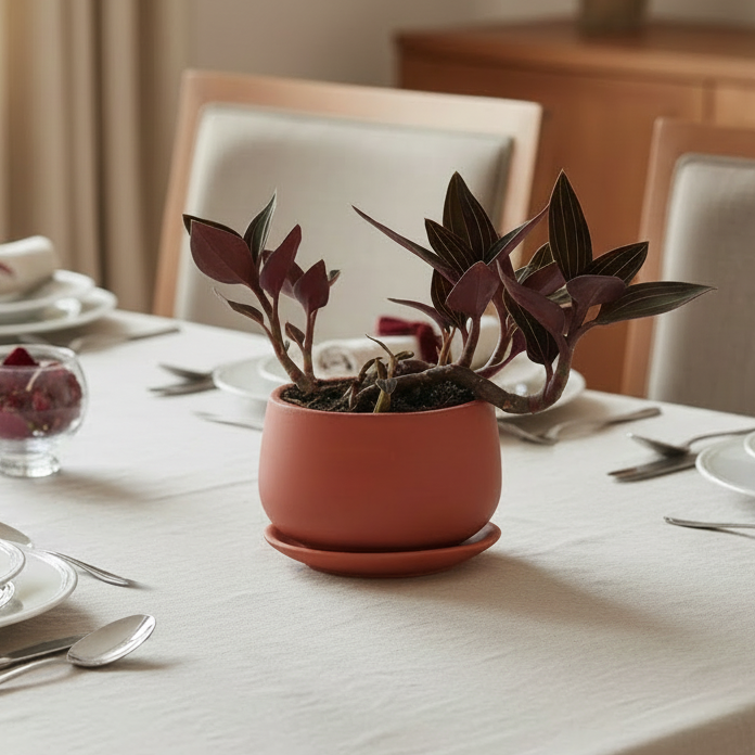 • Valentina Terracotta Pot 5" - a beautiful molded terracotta pot that is porous and fire glazed to allow plant roots to breathe; color works well with any decor and will develop a beautiful patina color over time. Includes matching dish underneath to catch water drainage and protect surfaces.