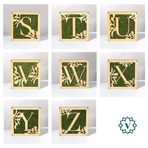 Monogrammed Moss Frame - Wooden Botanical Wall Art Letter "T"