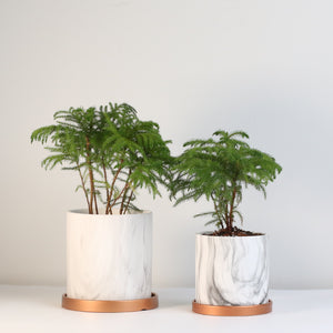 • Athena- This planter comes packaged in a 5.5 inch round marbled porcelain planter pot ready for your home or office space with a ceramic rose gold tray to catch drips when watered.