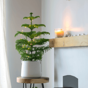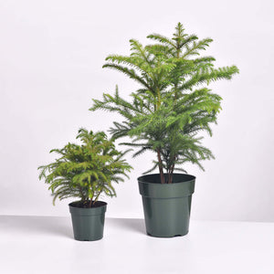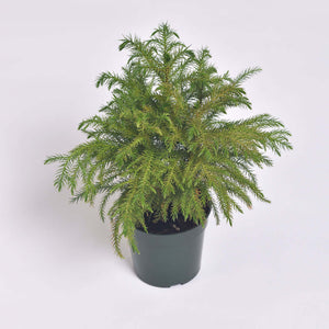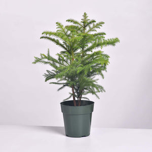 Norfolk Island Pine - Araucaria heterophylla is very popular as a sustainable Christmas tree and works great in sitting rooms or other spaces as a low maintenance indoor tree that can be used as a small version of a Christmas tree for a dorm room or small space. This gorgeous evergreen tree - the Norfolk Island Pine, brings an outdoor woodsy feel to your indoor space. It can be decorated too!