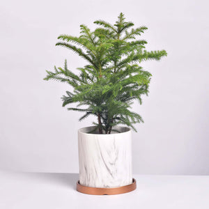Norfolk Island Pine, also known as 'The Little Holiday tree,' is not a pine tree but a slow-growing, tropical plant native to Norfolk Island near Australia. They have a pretty cool part of history attached to it. Belonging to the Araucariaceae family, Norfolk Island Pine had been widely distributed throughout the world during the age of dinosaurs. With the Cretaceous–Paleogene extinction event and the dinosaurs, the Araucariaceae family also went extinct in the Northern Hemisphere, but the plants continued to thrive in the Southern Hemisphere.