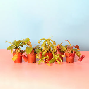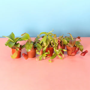 The Pitcher Paradise Bundle is a carnivorous pitcher plant lover's dream! This collection features five stunning Nepenthes varieties: the elegant Nepenthes Alata, the vibrant Nepenthes Gaya, the striking Nepenthes Lady Luck, the unique Nepenthes Miranda, and the bold Nepenthes Sanguinea. Perfect for adding a touch of exotic beauty to your space, these pitcher plants are both captivating and low-maintenance, making them a must-have for any plant enthusiast.