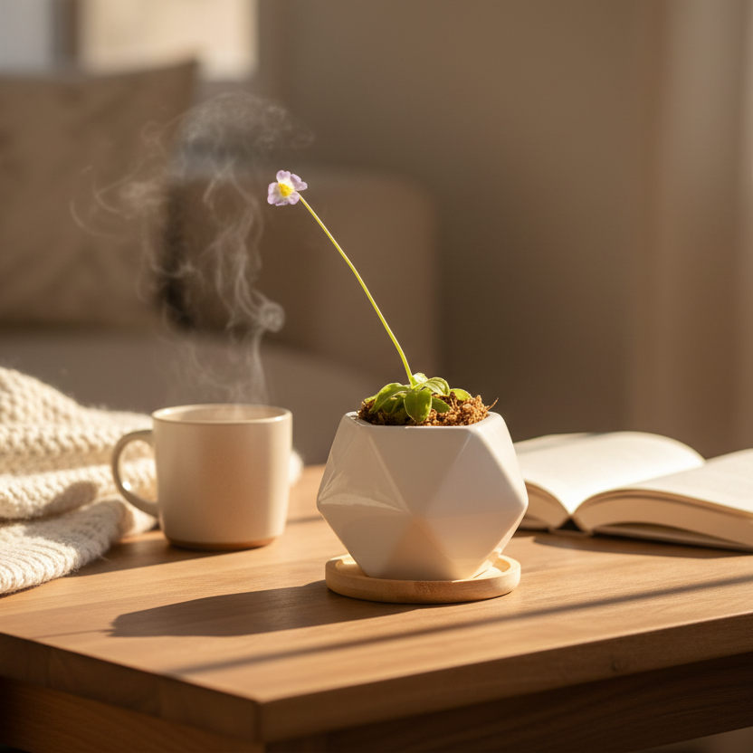 These plants thrive in humid environments and should only be watered with distilled or rainwater. They are sensitive to minerals, fluoride, and chlorine, which can cause yellowing or browning of their leaves. Additionally, avoid using regular soil, as it's too rich in nutrients for them. Instead, we offer Sphagnum Moss, which is the ideal medium for their growth.  They prefer bright light. Fluorescent or other cool-temperature grow lights can be used for the indoor cultivation of smaller species. A terrarium of smaller carnivorous plants under such lights can make a great starter set-up.
