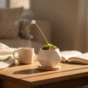 • Wanda Ceramic 3"   - Elegant Hexagonal patterned ceramic planter pot with bamboo base.