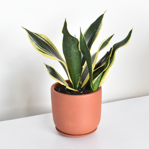 Snake plants are a quintessential houseplant to add beauty and vibrance to your space. This Sansevieria Black Gold is a stunning dark leaf with the variegated yellow edge that gives it the name Black Gold. We love to see this plant along with other greenery as the deep color helps contract against vibrant green foliage leaves.