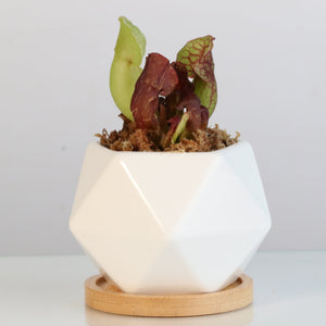 Wanda Ceramic 3": Elegant Hexagonal patterned ceramic planter pot. Includes a bamboo tray.