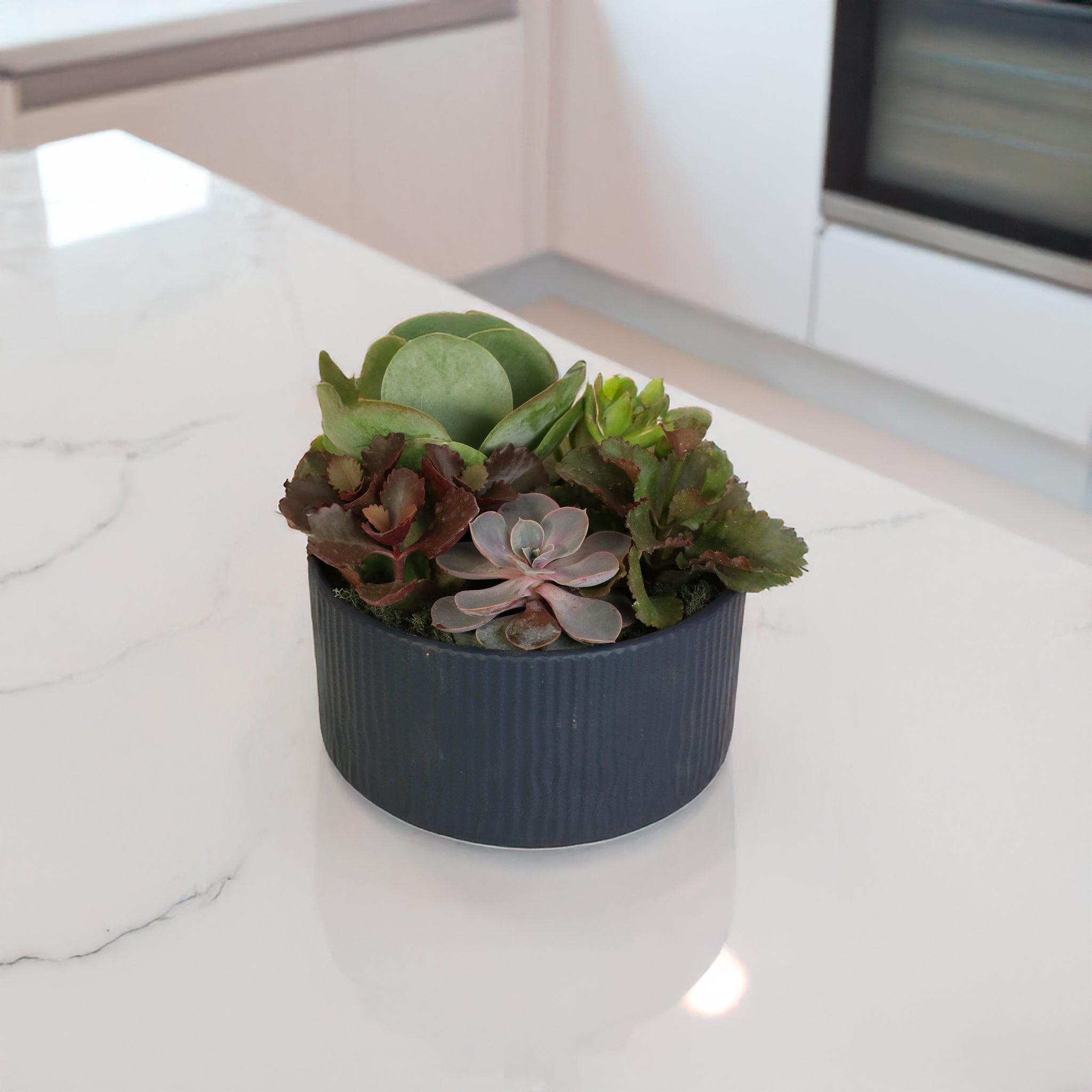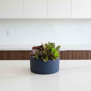Perfect for bright corners, living rooms, bedrooms, or office desks, this arrangement offers all the beauty of nature with minimal care. Planted in a stylish 8" diameter x 4" high pot (9" tall including plants), it’s a modern, elegant centerpiece that complements any décor.